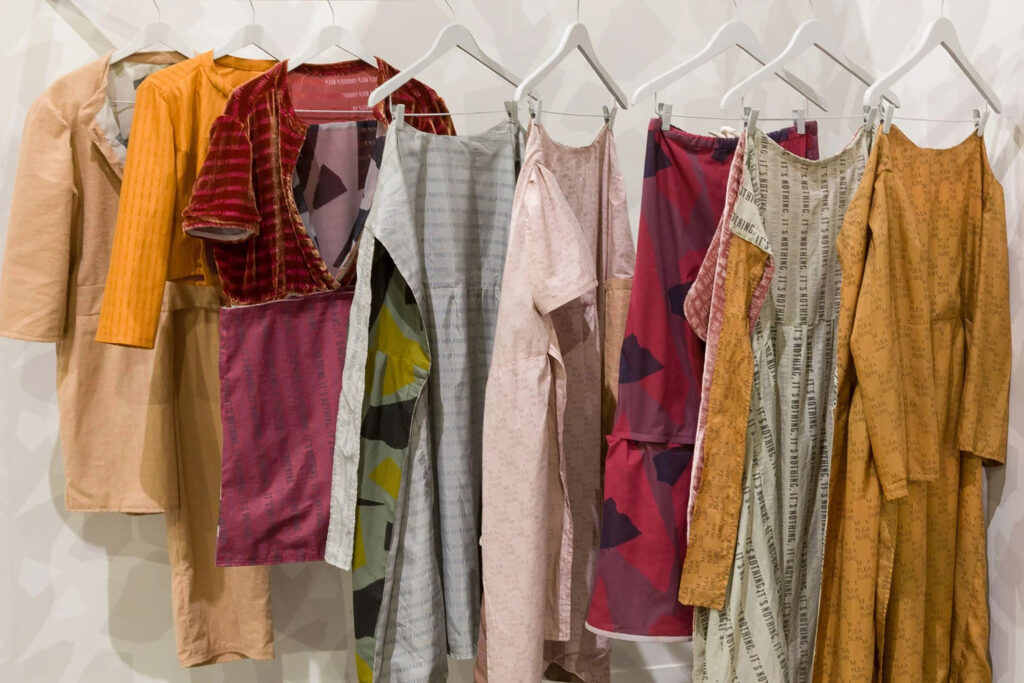 Anna McNeary, "In Exchange" 2018, Wallpaper, screenprinted and burnout velvet garments, Variable dimensions. Courtesy of the artist. -