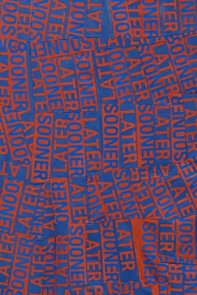 Anna McNeary, "Timeline 2" 2023, Screenprint on dyed canvas, 70” x 45”. Courtesy of the artist. -
